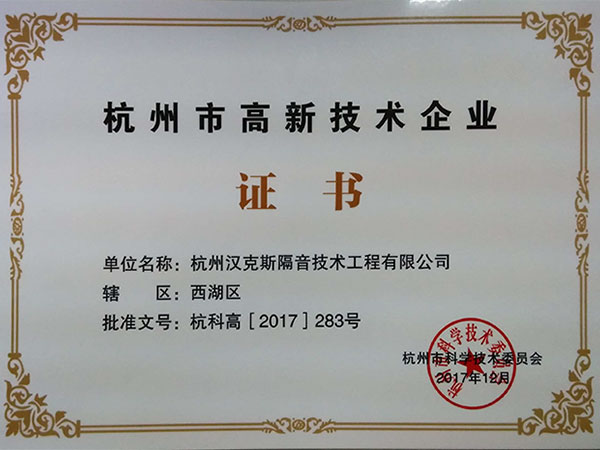 杭州市高新技術(shù)企業(yè)證書